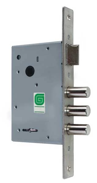Замок врезной сувальдный ЗВ 1011 с защелкой под ручку предназначен для установки в металлические и деревянные двери, шкафы и сейфы. Замок универсальный - переворот защелки выполняется без разбора замка. 2-ой класс безопасности. Защита от наиболее распространенных методов вскрытия: защита от вскрытия отмычкой - ложные пазы на стойке и сувальдах, увеличенная жесткость пружин сувальд; защита от "свертыша" - ослабленный зуб рейки хвостовика. Оптимально устанавливать в паре с замком Гардиан 12.01.
