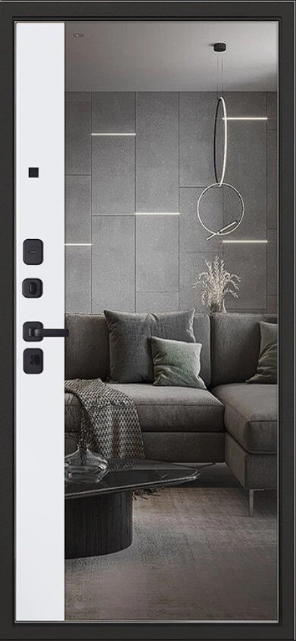 Надежная входная Дверь Scandi с зеркалом премиум класса по цене 45 263 руб. Большая толщина стали защитит от проникновения в ваш дом, квартиру или коттедж. Используется очень качественная фурнитура: замки, цилиндры, ручки, защелки. Покрытие и отделка двери изготовлено под внимательным контролем производителя. Дверь имеет долгий срок службы и гарантию.