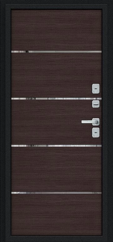 Надежная входная Дверь Браво Thermo Лайн/BChrome Букле черное/Wenge Melinga премиум класса по цене 46 213 руб. Большая толщина стали защитит от проникновения в ваш дом, квартиру или коттедж. Используется очень качественная фурнитура: замки, цилиндры, ручки, защелки. Покрытие и отделка двери изготовлено под внимательным контролем производителя. Дверь имеет долгий срок службы и гарантию.