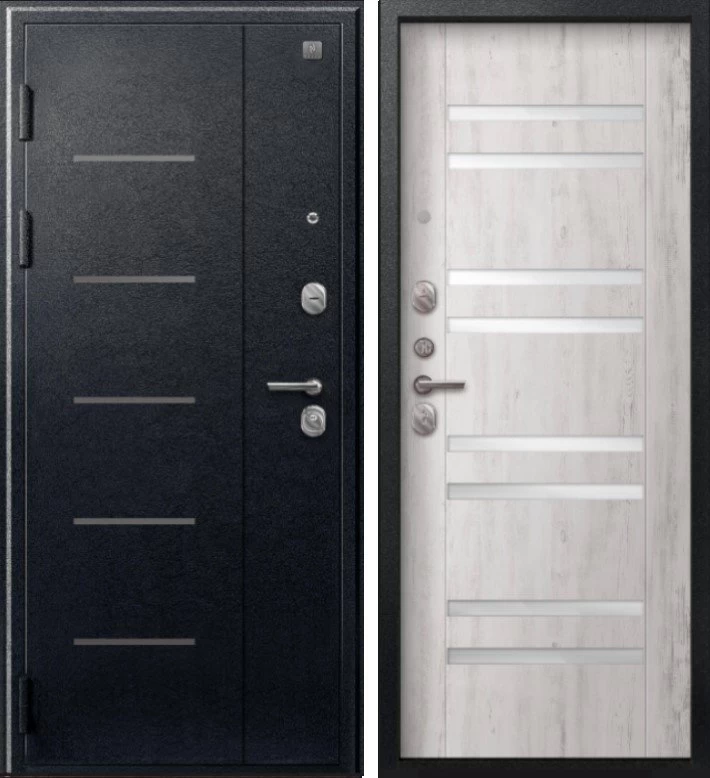 Надежная входная Дверь V-07 Черный муар - Дуб пепельный премиум класса по цене 41 963 руб. Большая толщина стали защитит от проникновения в ваш дом, квартиру или коттедж. Используется очень качественная фурнитура: замки, цилиндры, ручки, защелки. Покрытие и отделка двери изготовлено под внимательным контролем производителя. Дверь имеет долгий срок службы и гарантию.